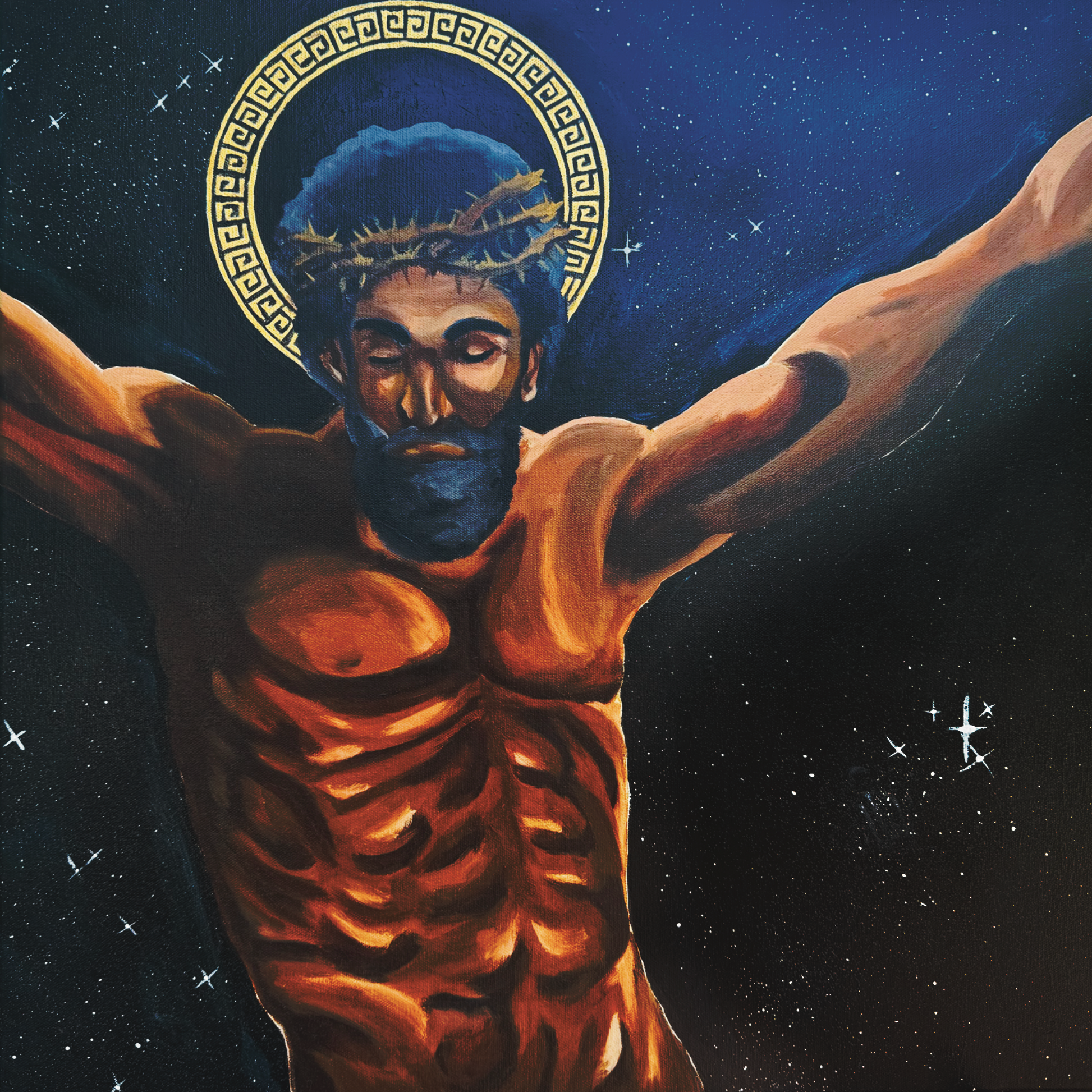 “He Who Conquers” 24x24 inches, oil and genuine gold leaf on canvas.