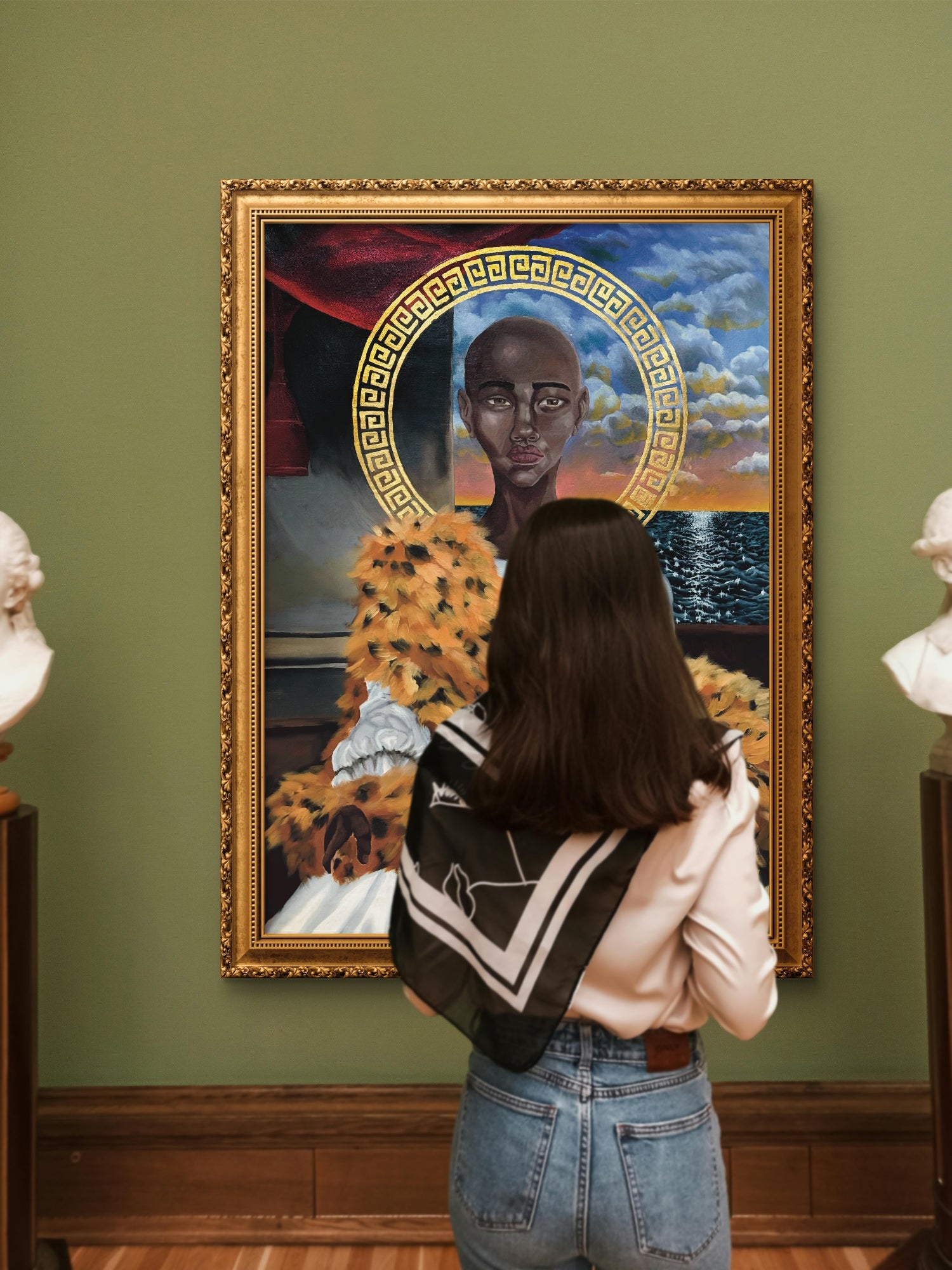 Original painting. “Lady by the Water” 32x45 (2022) oil and gold leaf on canvas.